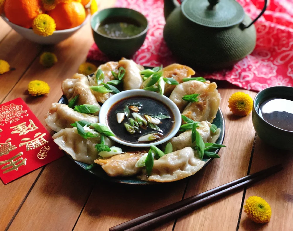 En China, la celebración del año nuevo comienza con el desayuno, conocido como Dim Sum. Los Potstickers generalmente se comen como parte del menú y se combinan con bebidas de té calientes que incluyen té verde, oolong, de jazmín y de crisantemo.