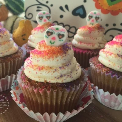 Cuando voy de compras siempre me gusta buscar ingredientes y productos de temporada. Y cuando encontré estas mini calaveritas de azúcar pensé serían la decoración perfecta para unos ricos cupcakes de calabaza para celebrar el Día de los Muertos.